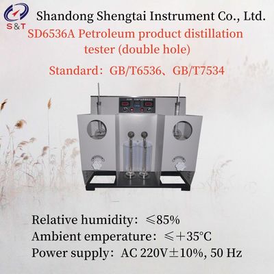 SD6536A petroleum product distillation apparatus (double holes) is based on the standard of the People's Republic of China GB/T6536 requirements stipulated in "the distillation of petroleum products determination method of design and manufacture, GB/T6536 স্ট্যান্ডার্ড অনুযায়ী পেট্রল, বিমানের পেট্রল, স্টিম জেট জ্বালানি, বিশেষ ফুটন্ত পয়েন্ট দ্রাবক, নাফটা, ডিজেল তেল,ডিস্টিল করা জ্বালানী তেলের পণ্য এবং অনুরূপ ডিস্টিলেশন.