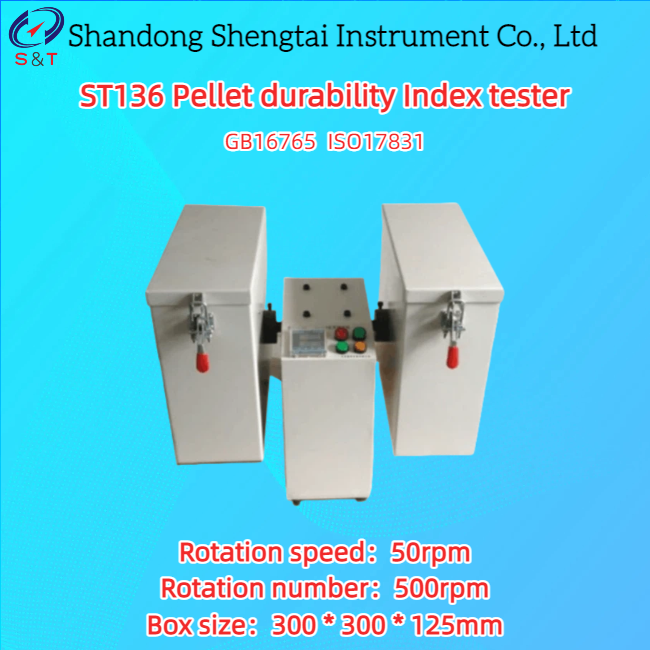 ST136 Pellet durability tester (particle pulverization rate tester) is designed and manufactured strictly in accordance with GB16765 General Technical Conditions for Pellet Feed and ISO17831 Standard for Mechanical Durability of Solid Biofuel Particles and Compression Blocks