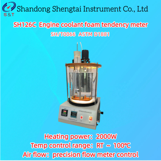 SH126C ইঞ্জিন কুল্যান্ট ফেনা প্রবণতা পরীক্ষক চীনের গণপ্রজাতন্ত্রী পেট্রোকেমিক্যাল শিল্প স্ট্যান্ডার্ড SH/T0066 "ইঞ্জিন কুলিং ফেনা নির্ধারণ পদ্ধতি" এর প্রয়োজনীয়তা অনুযায়ী ডিজাইন করা হয়েছে, যা SH/T0066 স্ট্যান্ডার্ডের পরীক্ষার পদ্ধতি অনুসারে মিশ্রিত বা ঘনীভূত ইঞ্জিন কুল্যান্টের ফেনা নির্ধারণের জন্য উপযুক্ত।